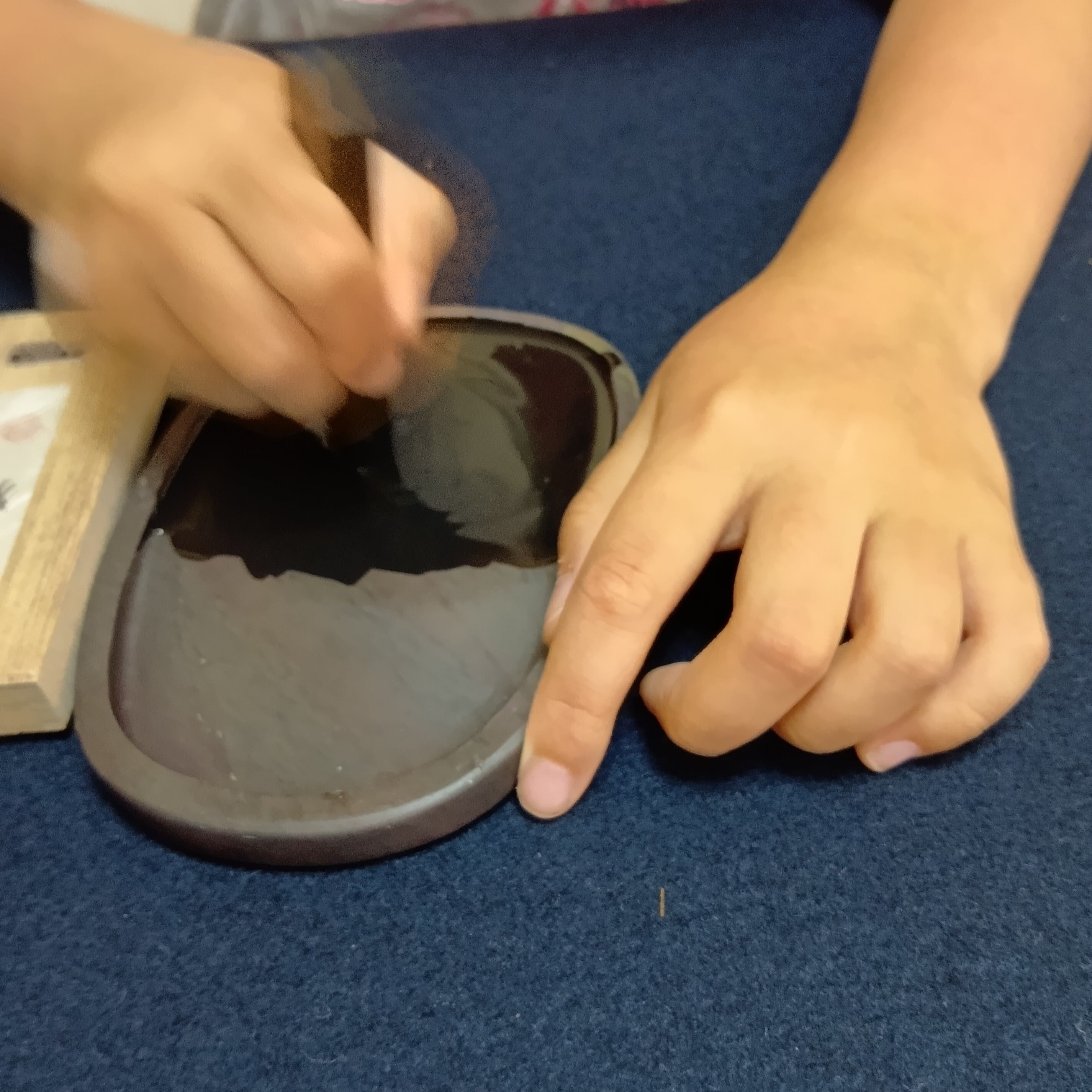 私は、たき先生のところで初めて「墨をすって字を書き」ました。